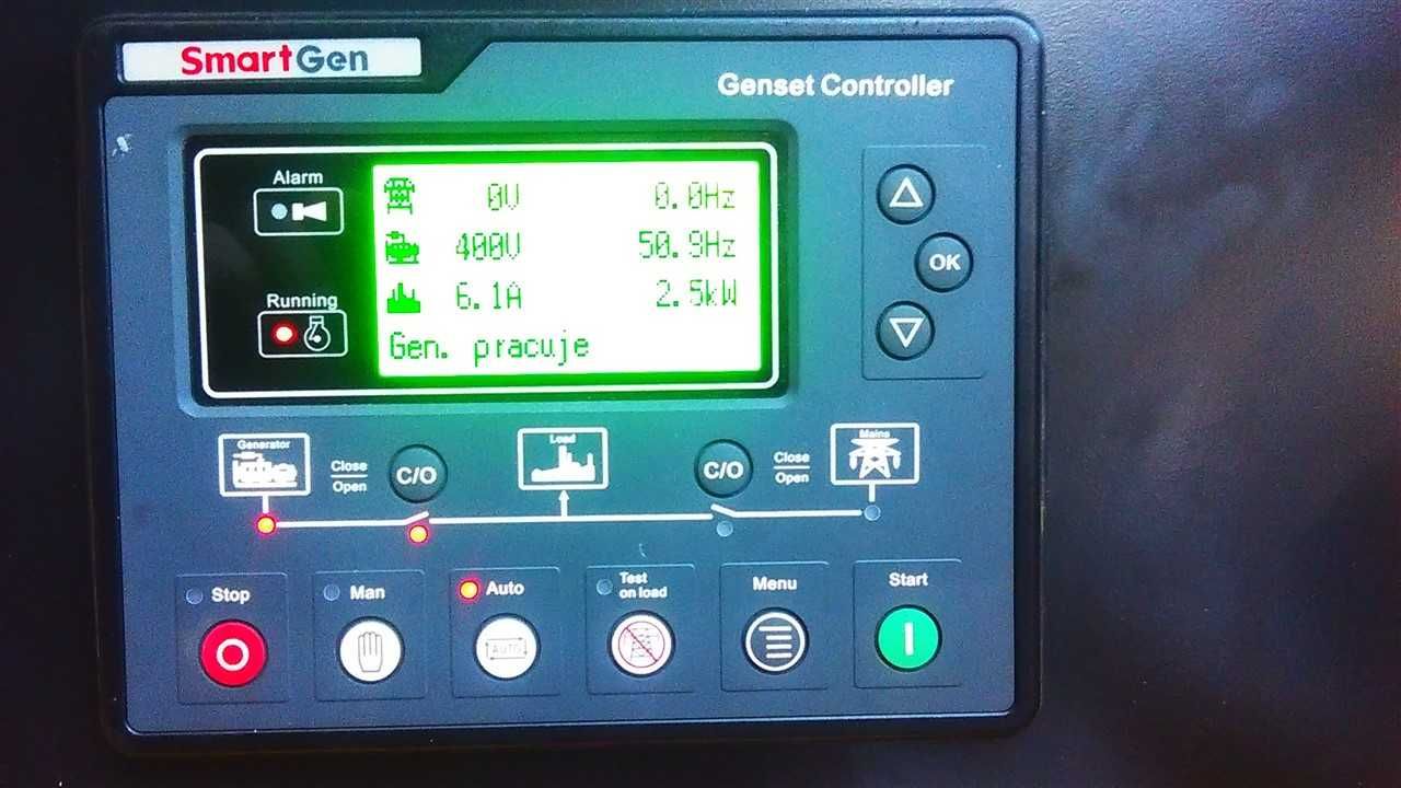 Nasz agregat posiada sterownik z polskim menu, co jest wymagane i zgodne z zaleceniami Państwowej Inspekcji Pracy.
